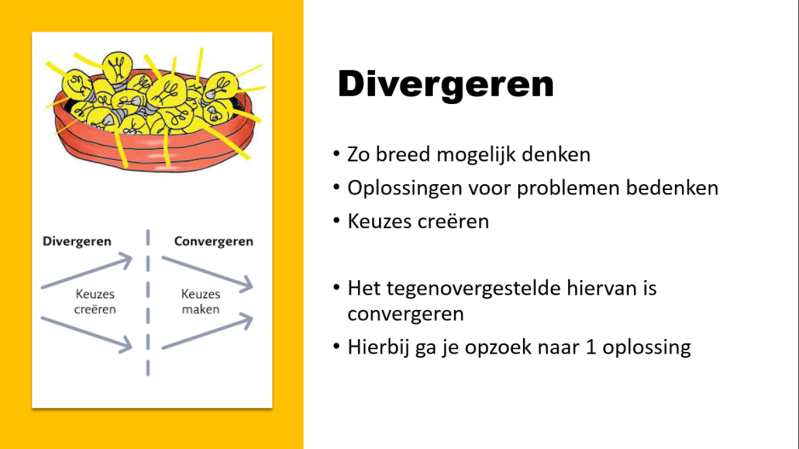 Ik heb het gedaan over brainstormen, divergeren en out of the box.